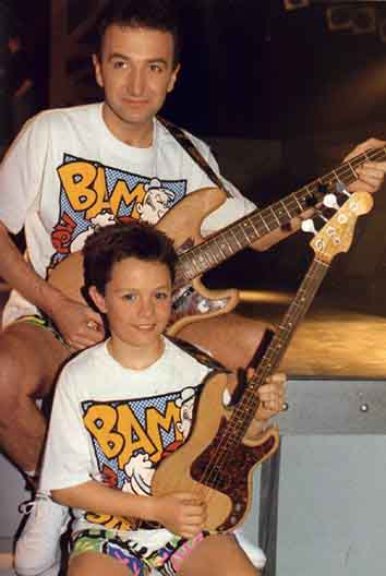この後登場するジョンは、「田端義男状態」でベースを抱えている・・・。